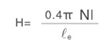 ![]() | H:磁場強(qiáng)度(Oersteds)magnetizing force(oersteds) N:圈數(shù) number of turns I:電流(A)peak magnetizing current(amperes) Le:磁路長度(cm) mean magnetic path length(cm) 1Oersted=0.7958A/cm |